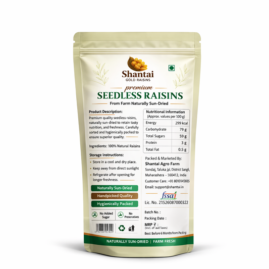 Shantai Gold Raisins (Kishmish) โ Premium A1 Quality | Naturally Sun-Dried | Soft & Sweet