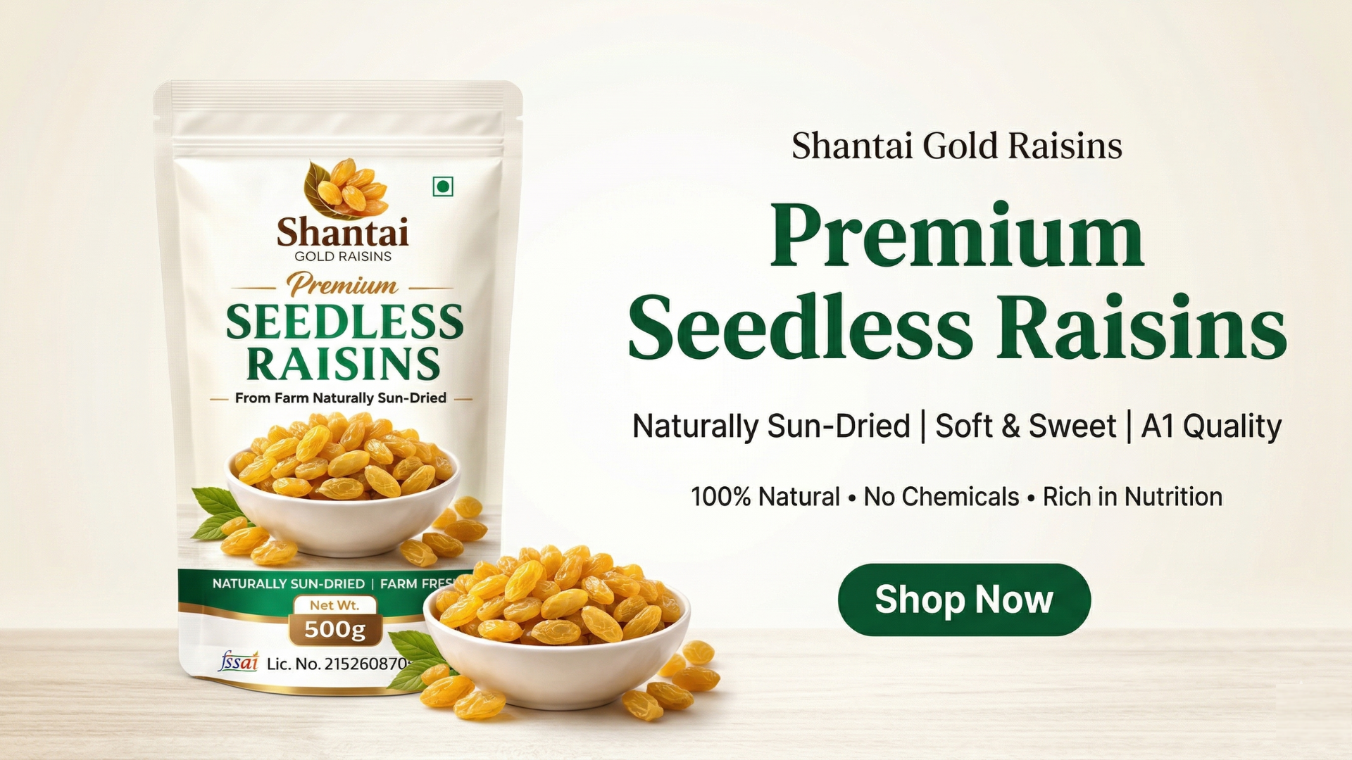 Shantai Gold Raisins (Kishmish) โ Premium A1 Quality | Naturally Sun-Dried | Soft & Sweet